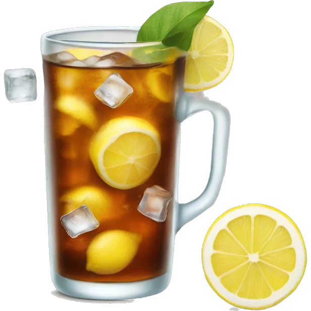 iced tea in a mason jar, with no lid, and a straw. In the iced tea have lemons, mint leaves and ice emoji