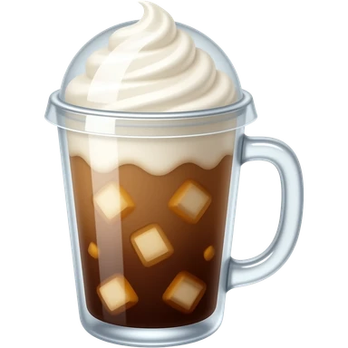Iced caramel latte with strawberry whipped cream and pink straw emoji