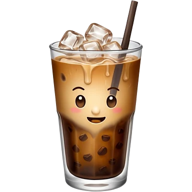 Anatomic heart composed of iced latte and ice cube inside the heart emoji