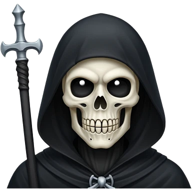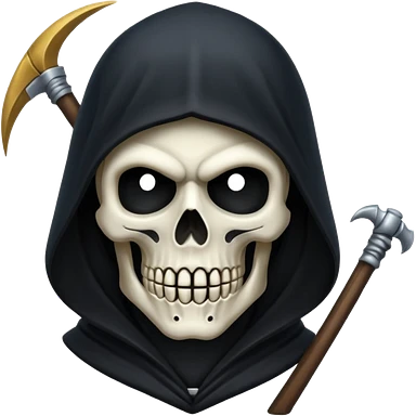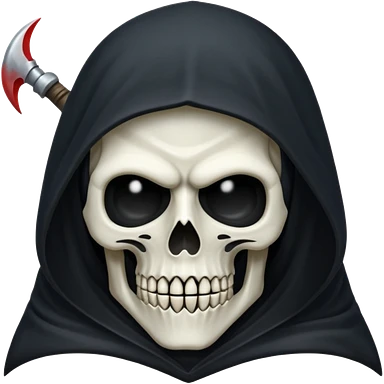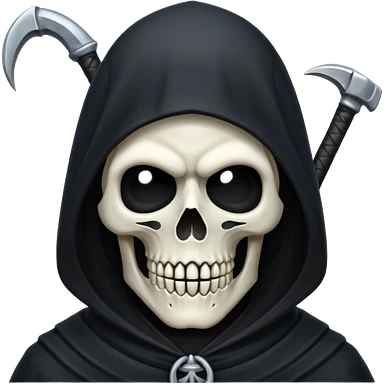 Icon of the Grim Reaper's face. His skull is stylized, his hood is tattered. He is [например: winking with a sly grin]. Clean, flat vector art, high contrast. Stylized as a modern logo or a medieval woodcut. Strictly black and white with one accent color like dark moss green or deep crimson. emoji