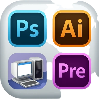 icone avec logo photoshop illustrator premiere pro plus un ordinateur dans un carre emoji