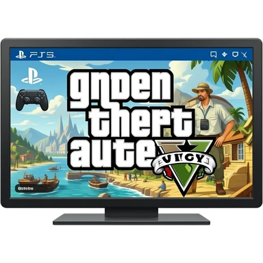 icone mannette ps5 dans un ecran tele et sur l ecran tv gta 5 emoji