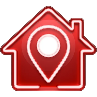 ícone casa e simbolo de localizaçãovermelho scarlat vidro neon brilhante emoji
