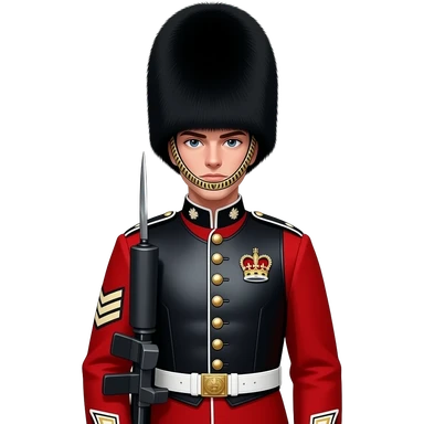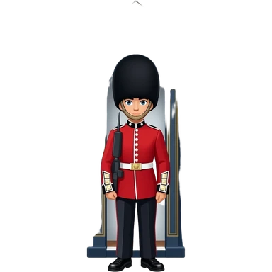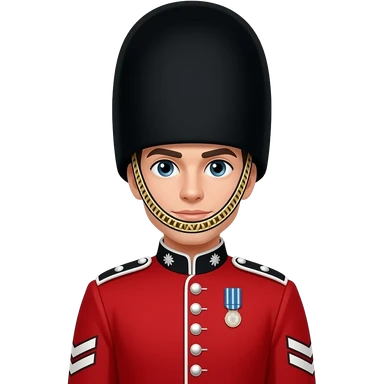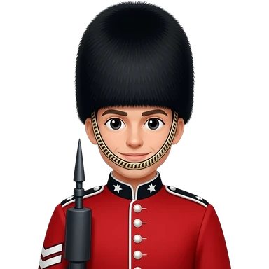 British royal guard in red uniform with iconic tall black hat, London palace style emoji