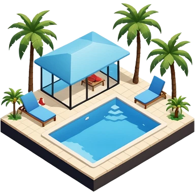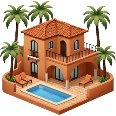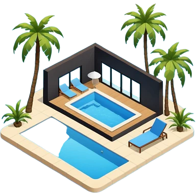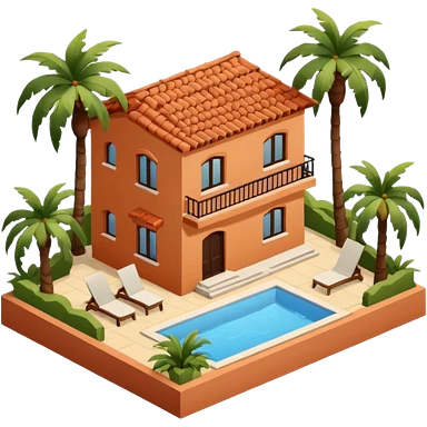 Spanish airbnb pool, palm trees isometric exterior emoji