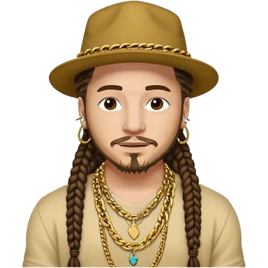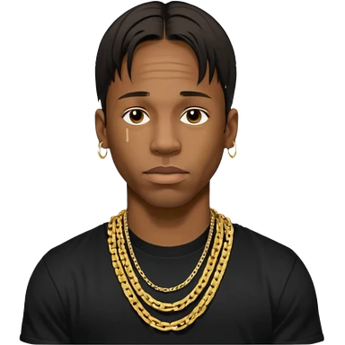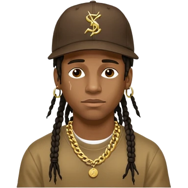 Travis Scott with gold chain necklace, wearing hat, dreadlock hair emoji