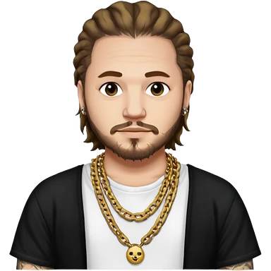 post malone with gold chain necklace, wearing hat, dreadlock hair emoji