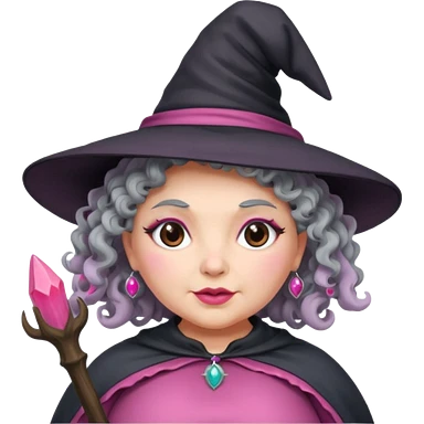 plump witch with pink skin, grey curl hair emoji