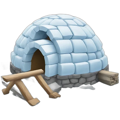 A traditional snow igloo on a vast snowy plain under a clear blue sky. Soft sunlight casts gentle shadows across the snow. The igloo has a small entrance tunnel and compacted snow blocks forming its dome. Realistic Arctic environment, calm winter feeling. Negative: Background transparent. emoji