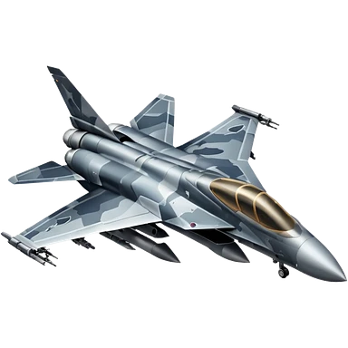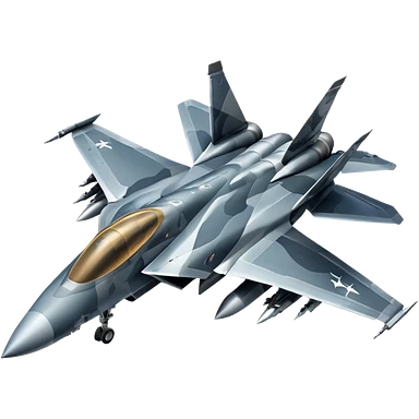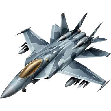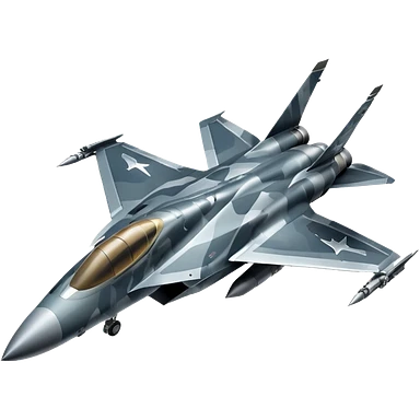 Draw a modern fighter jet with sharp wings, camo design & missiles mounted. emoji