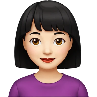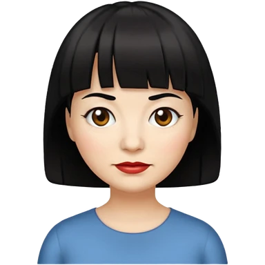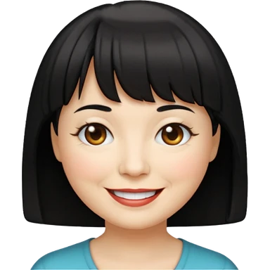 Illustrated emoji of a middle aged woman with short black hair and bangs, white skin and dark eyes emoji | AI Emoji Generator