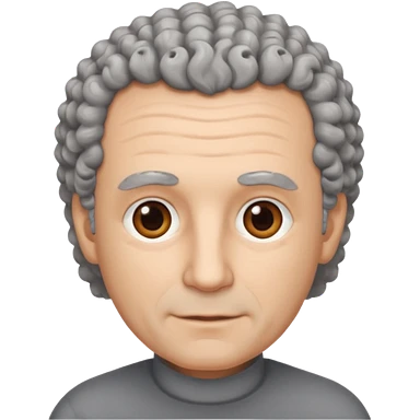 Illustrated emoji of a middle aged man with receding grey curly hair, brown eyes, white skin emoji
