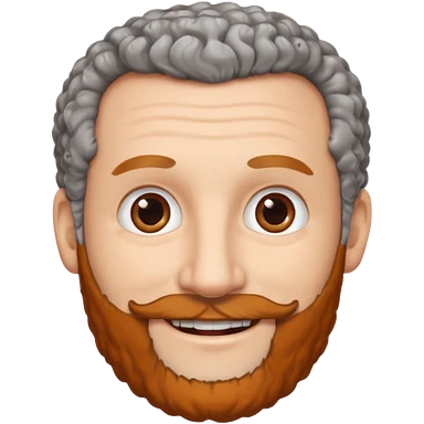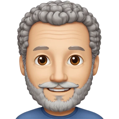 Illustrated emoji of a middle aged man with receding grey curly hair, brown eyes, white skin and a beard emoji