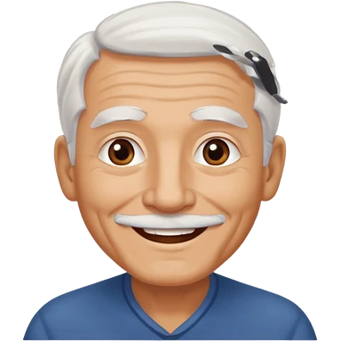Illustrated emoji of an old man, white hair, no beard, no mustache, dark eyes, tanned skin