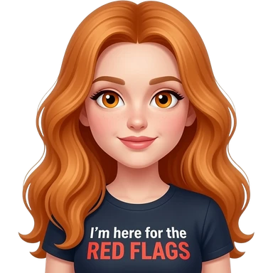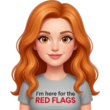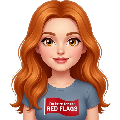 sexy girl with overlong ginger hair and ginger eyes a top with I'm here for the RED FLAGS written on it emoji