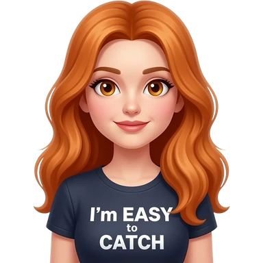 sexy girl with overlong ginger hair and ginger eyes a top with ... I'm EASY to CATCH written on it emoji
