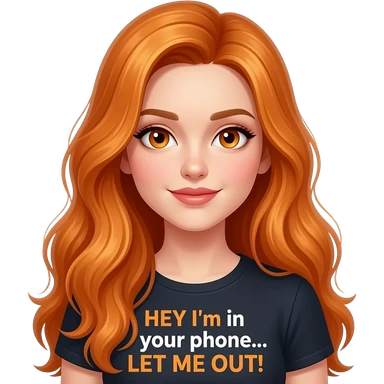 sexy girl with overlong ginger hair and ginger eyes a top with HEY I'm in your phone... LET ME OUT! written on it emoji