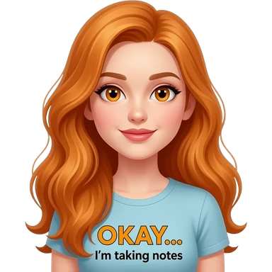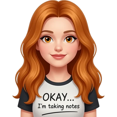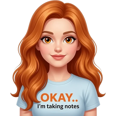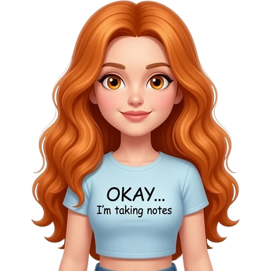 sexy girl with overlong ginger hair and ginger eyes a top with OKAY... I'm taking notes written on it emoji