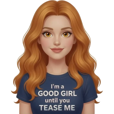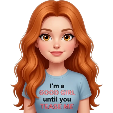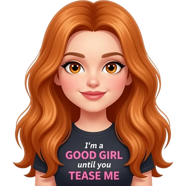 sexy girl with overlong ginger hair and ginger eyes a top with I'm a GOOD GIRL until you TEASE ME written on it emoji