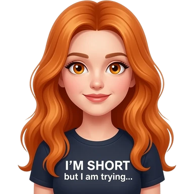 sexy girl with overlong ginger hair and ginger eyes a top with I'M SHORT but I am trying... written on it emoji