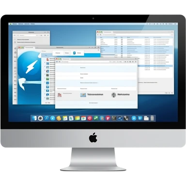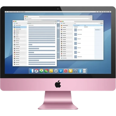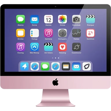 iMac computer with bar charts and beauty products like lipstick, nail polish, cream jars on the screen emoji