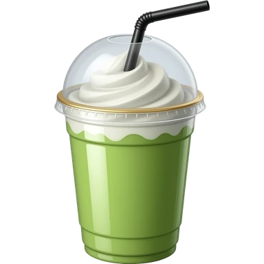Image hyperréaliste et accrocheuse d'un gobelet en plastique de matcha avec de la chantilly et une paille noire. Ajoute subtilité pour renforcer l'impression de luxe de la scène. L'ensemble est isolée sur un fond blanc. emoji