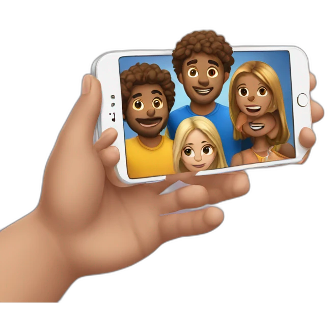 Imagine an emoji representing a group of friends gathered around an iPhone to play emoji | AI Emoji Generator
