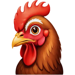 Cinematic Cute Brown Rooster Portrait Emoji, Head tilted playfully and inquisitively, featuring a glossy, immaculate brown plumage with a vibrant red comb, round, sparkling warm eyes filled with curiosity, Simplified yet irresistibly adorable features, highly detailed, glowing with a warm, friendly glow, high shine, affectionate and spirited, stylized with a touch of farmyard whimsy, bright and endearing, soft glowing outline, capturing the essence of a mischievous yet loving rooster, so playful it feels like it could strut out of the screen and into your arms! emoji