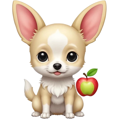 Apple head white Chihuahua with black dots. Big ears and big eyes. Full body emoji