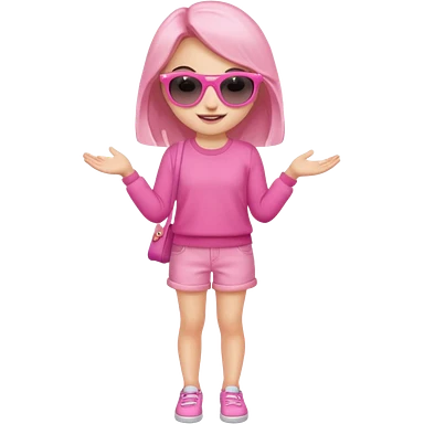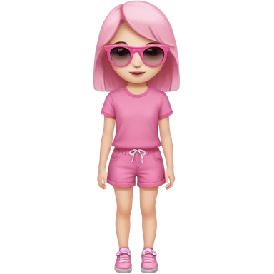 A beautiful asthethic cute girl with full body of clothes pink girly with cute sunglasses emoji