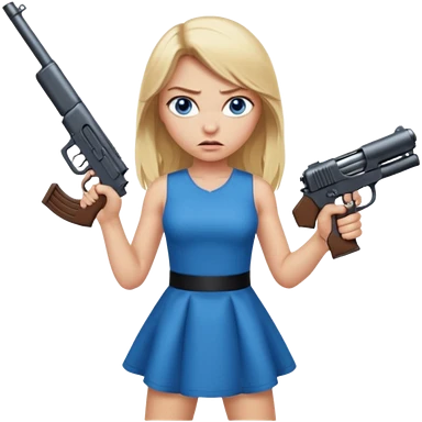 Beautiful blue eye blonde Long Hair Gangsta girl in a short Dress Looks angry with a big gun emoji