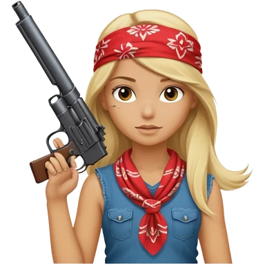 Beautiful blonde Long Hair Gangsta girl with a big gun emoji