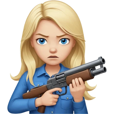 Beautiful blue eye blonde Long Hair Gangsta girl Looks angry with a big gun emoji