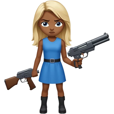 Sexy Beautiful blue eye blonde Long Hair Gangsta girl in a hot Dress Looks angry with a big gun emoji