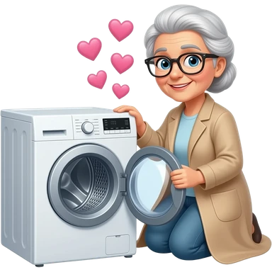 old lady.slim.small. has very short pale red hair. in love with her new washing machine emoji