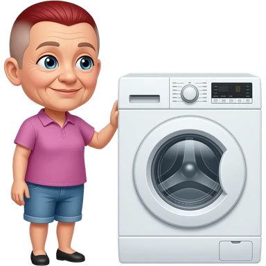 old lady.slim.small. has very close cropped red hair. in love with her new washing machine emoji
