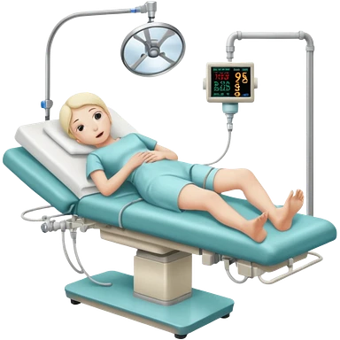 A colonoscopy procedure in progress in a clean, clinical operating room, showing a patient lying on an examination bed while the procedure is being performed, realistic medical environment. emoji