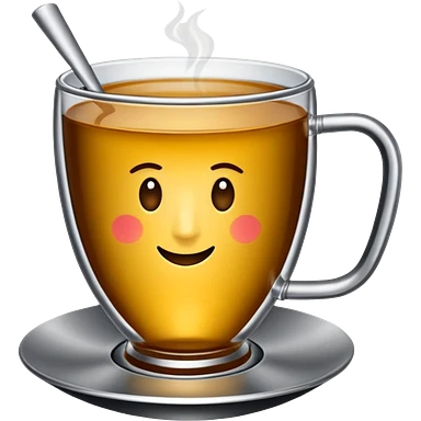 İnce belli kum saati şeklinde bir bardakta tavşan kanı renginde çay içinde de demir bir çay kaşığı emoji | AI Emoji Generator