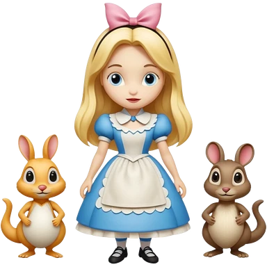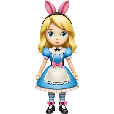 Isolated, detailed illustration of the most incredibly cute, modern style of disney's Alice in wonderland with anthropomorphic creatures figurine imaginable, toy style. emoji