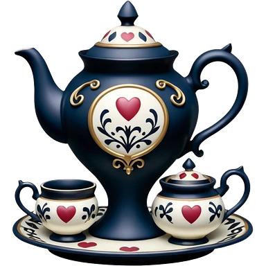 Isolated, detailed illustration of the most incredibly modern, gothic style of disney's Alice in wonderland tea party figurine imaginable, toy style. emoji