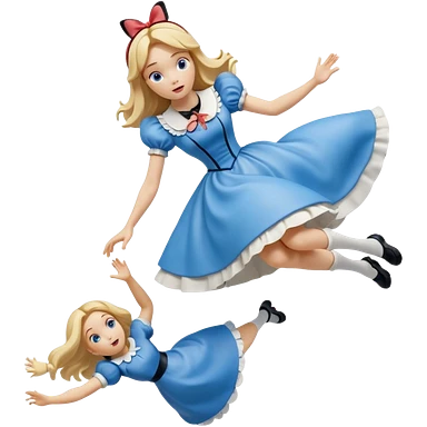 Isolated, detailed illustration of the most incredibly amazing modern style of disney's Alice in wonderland falling mid-air figurine imaginable, toy style. emoji