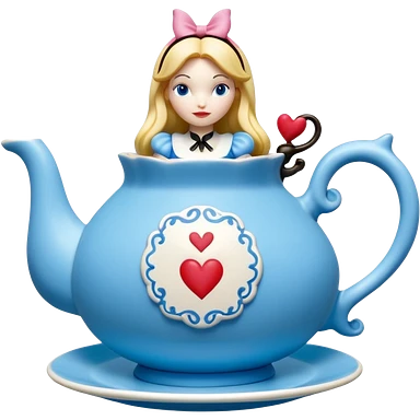 Isolated, detailed illustration of the most incredibly realisti, disney's Alice in wonderland's vintage tea pot figurine imaginable, toy style. emoji