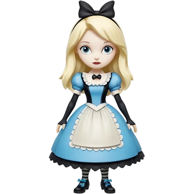 Isolated, detaile illustration of the most incredibly gothic punk modern day style of disney's Alice in wonderland figurine imaginable, toy style. emoji