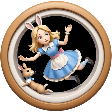 Isolated, detailed illustration of the most incredibly amazing modern style of disney's Alice in wonderland falling in rabbitbhole figurine imaginable, toy style. emoji