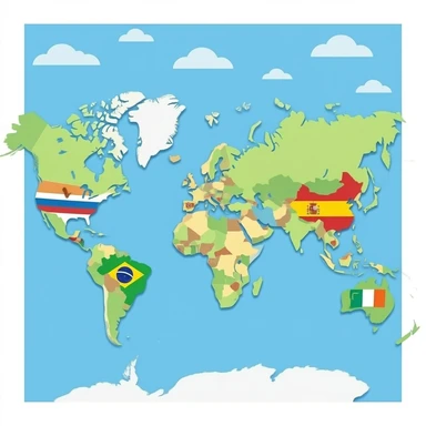 India, Japan, Egypt, Kenya, Brazil, Australia, Ireland, Russia, Spain, and United States emoji