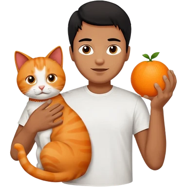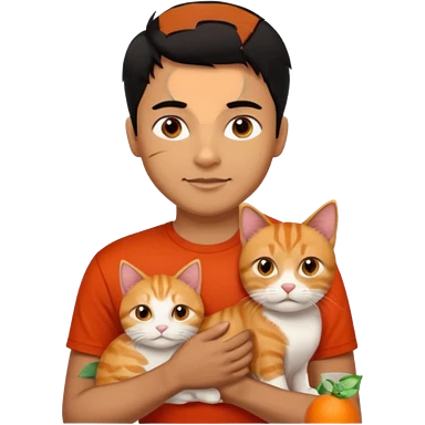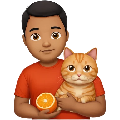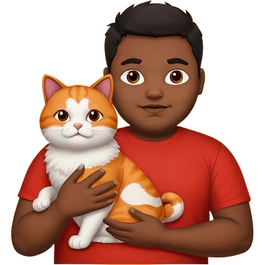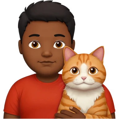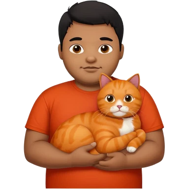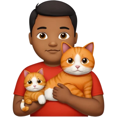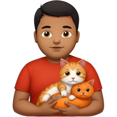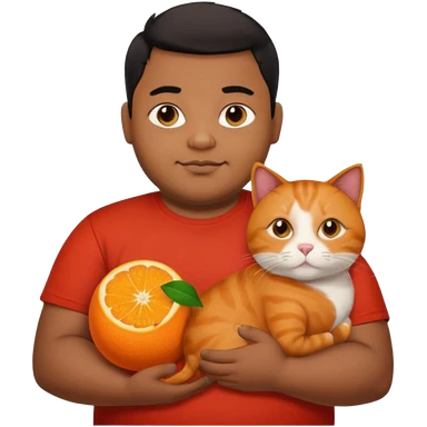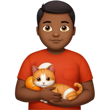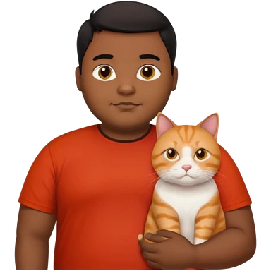 Indian black chubby guy with black hair in red t-shit with orange cat emoji | AI Emoji Generator