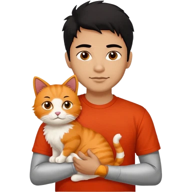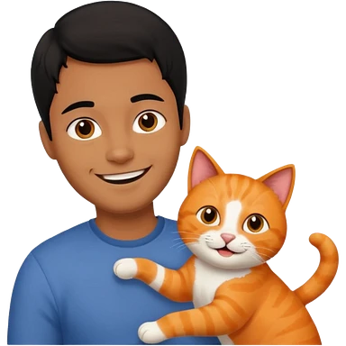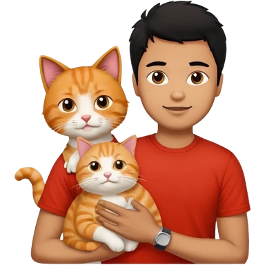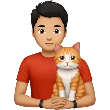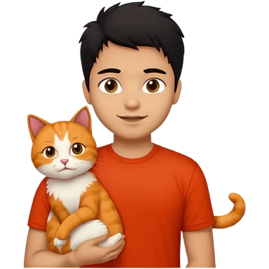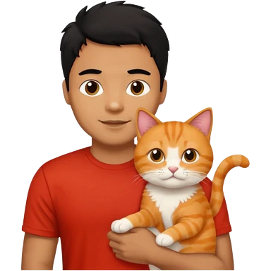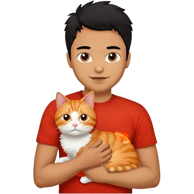 Indian Brown guy with black hair in red t-shit with orange cat emoji