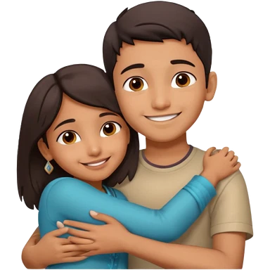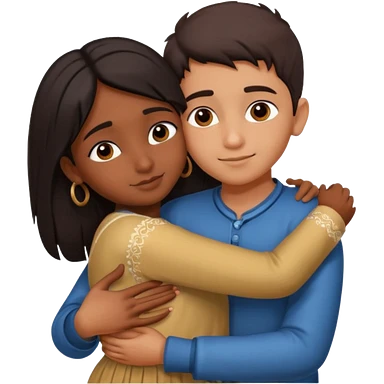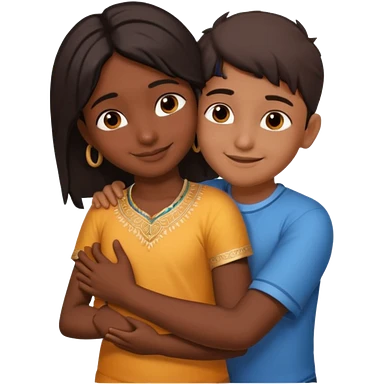 Beautiful girl with curly hair indian girl short girl hugging indian boy emoji