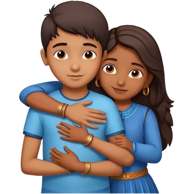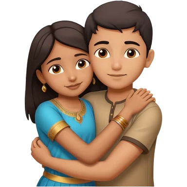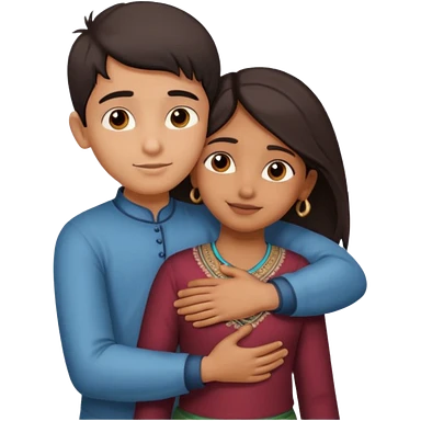 indian boy hugging indian girl from behind... boys hand down near navel of girl emoji | AI Emoji Generator