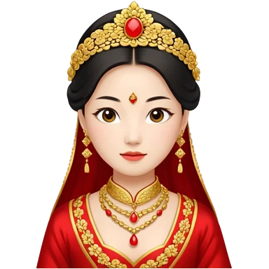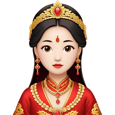 Chinese bride getup, heavy jewelary, traditional. emoji